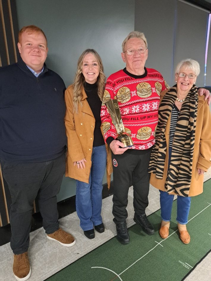 Our honorary president, Tony Currie, had a very big surprise at his Memory Club meeting on 1st December. Unknown to him, Dawn Astle MBE, daughter of the late Jeff Astle, had come to the Christmas Memory Club meeting to present Tony with the Jeff Astle Award presented by the PFA in special recognition for his services to Brain Health.